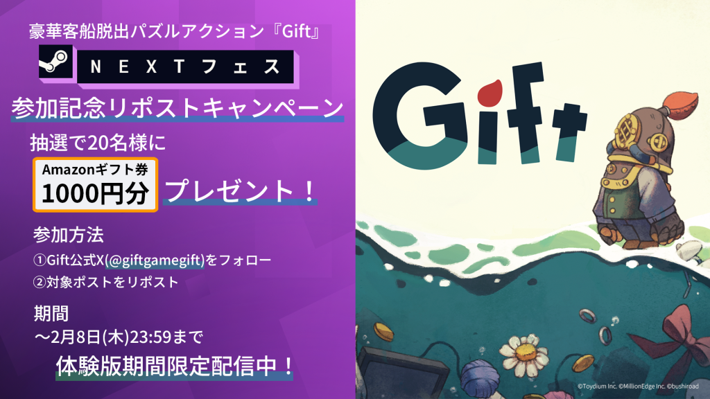 ①Gift公式X(旧Twitter)アカウント「@giftgamegift」をフォロー